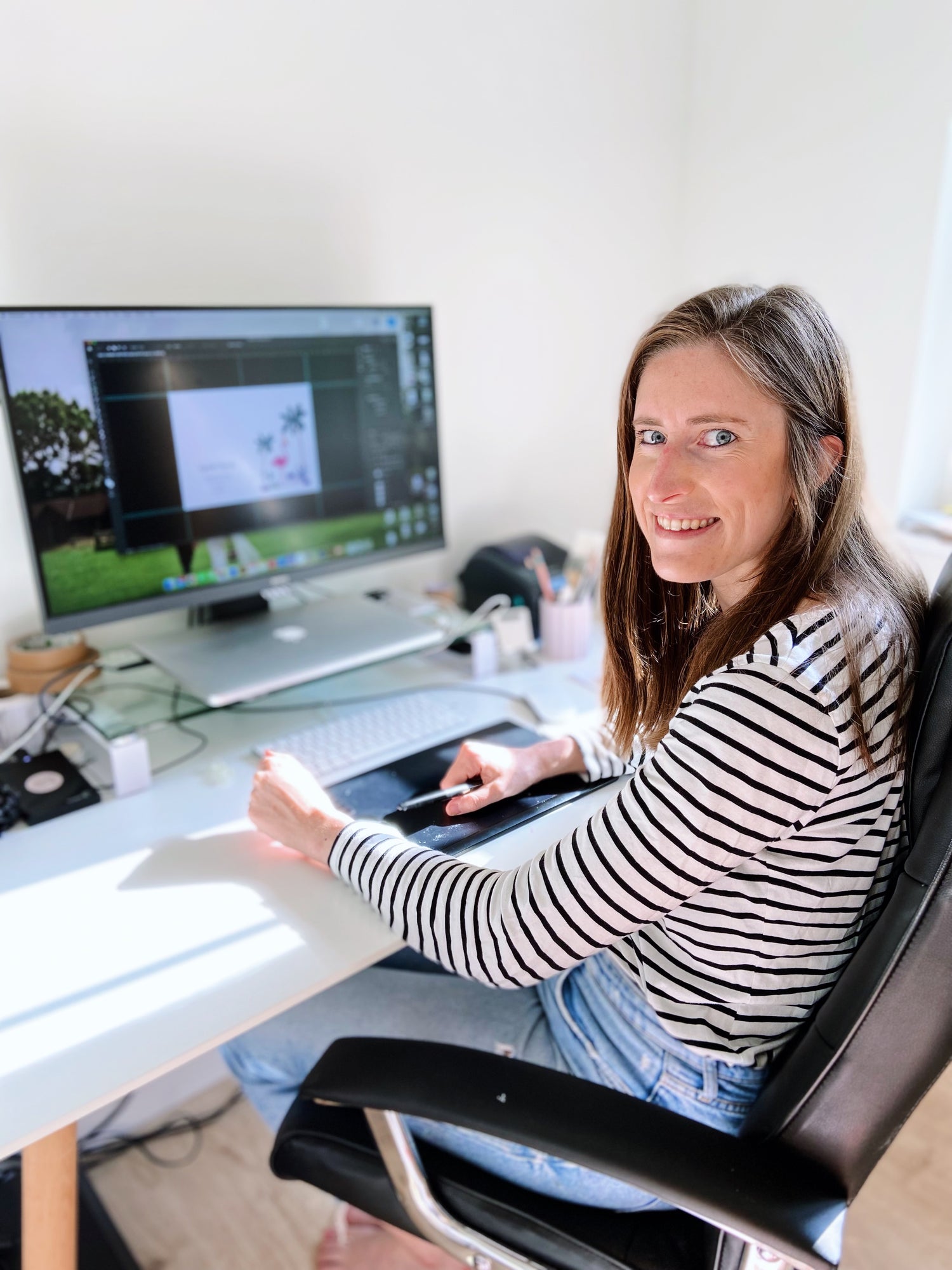 All of the designs are hand painted in gouache and edited in Photoshop in her studio in Surrey.